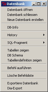 Der Punkt History im Menü Datenbanken erlaubt den Zugriff auf die letzten fünf geöffneten Datenbanken.